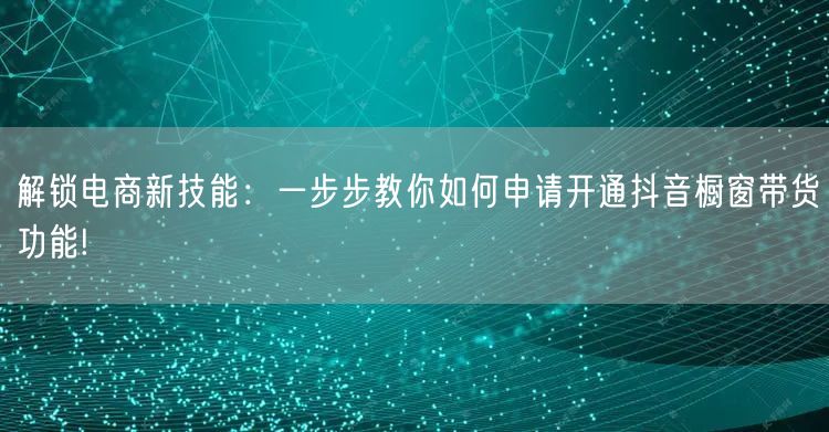 解锁电商新技能:一步步教你如何申请开通抖音橱窗带货功能!