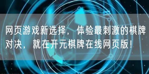 随着互联网的普及和科技的飞速发展,网页游戏成为越来越多人的休闲娱乐选择。在众多网页游戏中,棋牌类游戏因其独特的玩法和深厚的文化底蕴,一直受到广大玩家的喜爱。今天,我要为大家推荐一个全新的网页游戏平台——开元棋牌在线网页版,这里将带给你最刺激的棋牌对决体验。